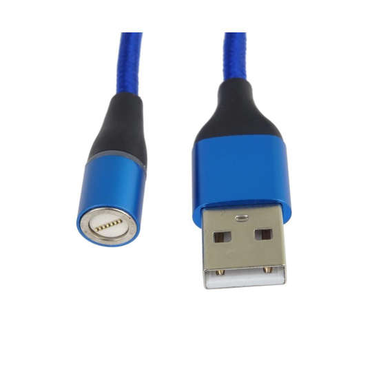 PremiumCord Magnetický micro USB a USB-C nabíjecí a datový kabel 1m, modrý