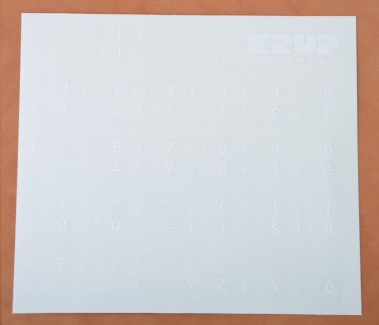 Přelepky na klávesnici CZ/SK - bílá barva (obrázek je ilustrační) - česká abeceda - kompletní přetisky, vhodné i pro notebooky.