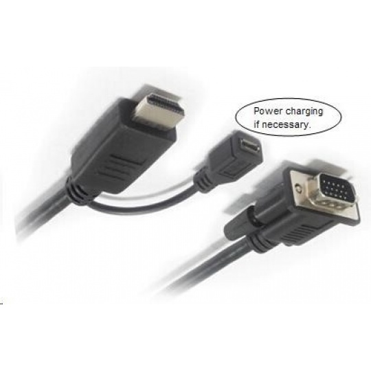 Kabelový převodník HDMI na VGA s napájecím micro USB konektorem - černý - Adaptér je určen pro počítače nebo notebooky s výstupem HDMI, pro převod obrazu na analogové VGA. - Vstup: HDMI konektor - male (kompatibilní s HDMI 1.4 a DVI 1.0 ) - Výstup: VGA konektor DB15 - female (kompatibilní s VESA VSIS v1r2 specification) - Převodník umožňuje propojit zařízení s výstupním signálem HDMI na zobrazovací zařízení nebo TV, monitor s VGA konektorem - Podporuje: HDCP1.0/1.1/1.2; HDMI1.1/1.2/1.3; - Technologie Plug and play; - Podporuje rozlišení: 480i/576i / 480p / 576p / 720p/1080i / 1080p / 60Hz; VGA výstup: 480i/576i / 480p / 576p / 720p/1080i / 1080p / 60Hz - Podporuje FULL HD 1080P (1920*1080P@60Hz) - Maximální rozlišení 1920*1200@60Hz. - Malá spotřeba: 130mA. - Napájení s HDMI (5V). - V případě nutnosti, pokud nestačí napájení z HDMI portu, použijte napájení adaptéru pomocí USB kabelu s micro USB konektorem, který zapojíte do micro USB tohoto převodníku (např.ku2m05f) Dálší možností přídavného napájení je použít napájecí adaptér 230V - 5V/1A s micro USB konektorem - Délka 2m - Barva: černá.