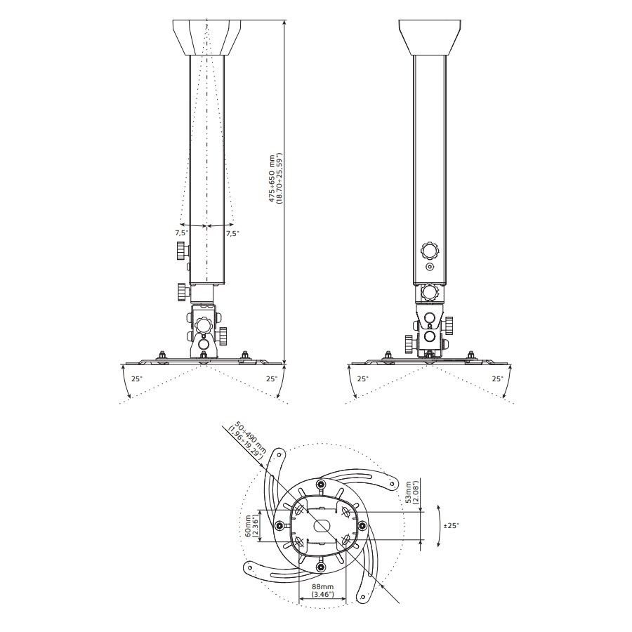 Délkově nastavitelný 45-65cm stropní držák projektoru, nosnost 15kg, náklopný.... více