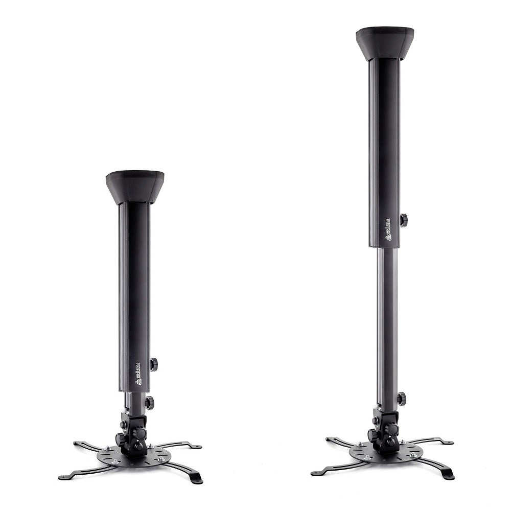 Profesionální designový stropní držák na projektor EDBAK PMV200 Stropní držák pro zavěšení projektoru s hmotností do 15kg, nejvyšší kvalita, design, nastavitelnost 65-100cm Ne vždy je možné použít obyčejný stropní držák na projektory, někdy je nutné použít držáky nejvyšší kvality a krásného designu. My Vám takové držáky na projektory nabízíme. Ucelená řada profesionálních stropních držáků na projektory v nadherném designovém provedení. Držáky jsou plně nastavitelné, vhodné pro 99% dostupných projektorů a dataprojektorů. Barevné provedení černé nebo bílé. Záruka 5 let. Pokud Vám záleží na designu stejně jako na kvalitě, jste na správné stránce. Držáky na projektory nejvyšší kvality, různé délkové nastavení, otáčení, naklápění, vedení kabeláže Edbak PMV200 Technické údaje: nosnost 15kg univerzální držák pro uchycení 99% dostupných projektorů na projektory se 3 nebo 4 otvory pro uchycení rozteč otvorů pro uchycení v rozmezí 50-490mm délkové nastavení 650mm až 1000mm otáčení do stran +/- 360° náklon do stran +/- 25° náklon nahoru a dole +/- 25° korekce roviny obrazu korekce nerovnosti stropu +/- 7,5° zajištění v požadované pozici systém pro skryté vedení kabeláže nejvyšší kvalita - profesionální provedení nádherný design bílé nebo černé provedení záruka 5 let Edbak PMV200 Na stropní držák s nastavením délky 65-100cm EDBAK PMV200 je možné uchytit všechny projektory, které mají 3 nebo 4 otvory se závitem s roztečí 50mm až 490mm. Díky nejvyšší kvalitě a profesionálnímu provedení jsou držáky EDBAK řady PMV vhodné opravdu kamkoliv..