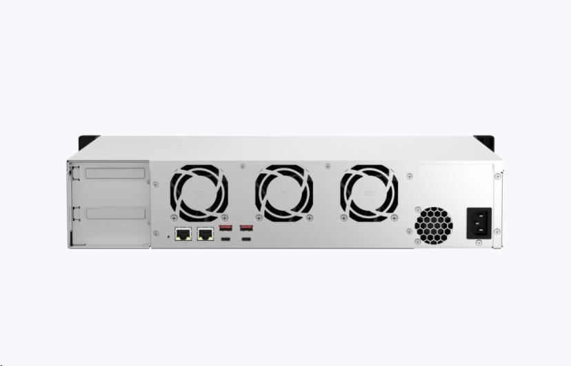 NAS s malou hloubkou pro montáž do racku s duálním připojením 2,5GbE. Čtyřjádrový procesor AMD Ryzen™ s podporou 10/25GbE nebo M.2 SSD cache s možností rozšíření PCIe pro virtuální aplikace (Podpora operačních systémů QTS nebo QuTS hero)