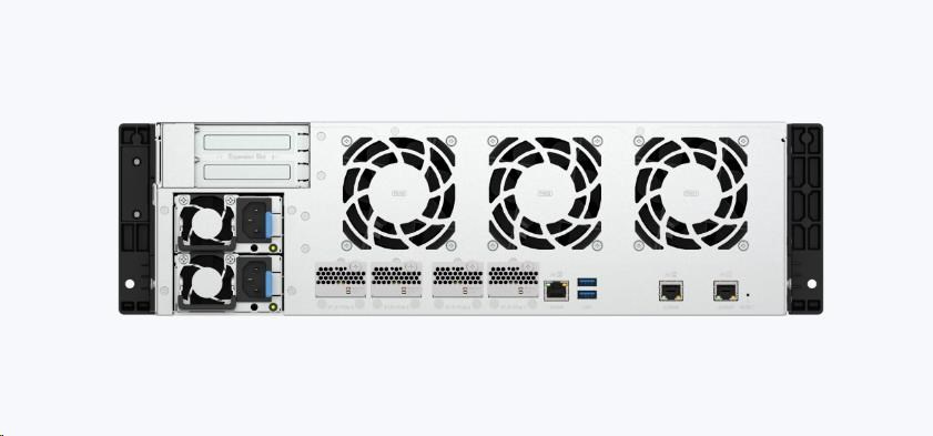 10GbE NAS TS-h1655XeU-RP nabízí vysoký výkon v kompaktním šasi 3U s malou hloubkou (29,6 cm / 11,6“), které je ideální pro serverovny s nedostatkem místa. Díky 8jádrovému procesoru Intel® a dvanácti 3,5” pozicím SATA se čtyřmi E1.S/M.2 PCIe NVMe sloty poskytuje TS-h1655XeU-RP flexibilní hybridní úložiště pro náročné pracovní úlohy, jako je virtualizace (VMware® a Hyper-V®) a aplikace náročné na data. Navíc redundantní zdroje napájení zajišťují spolehlivost systému pro spolehlivý provoz.