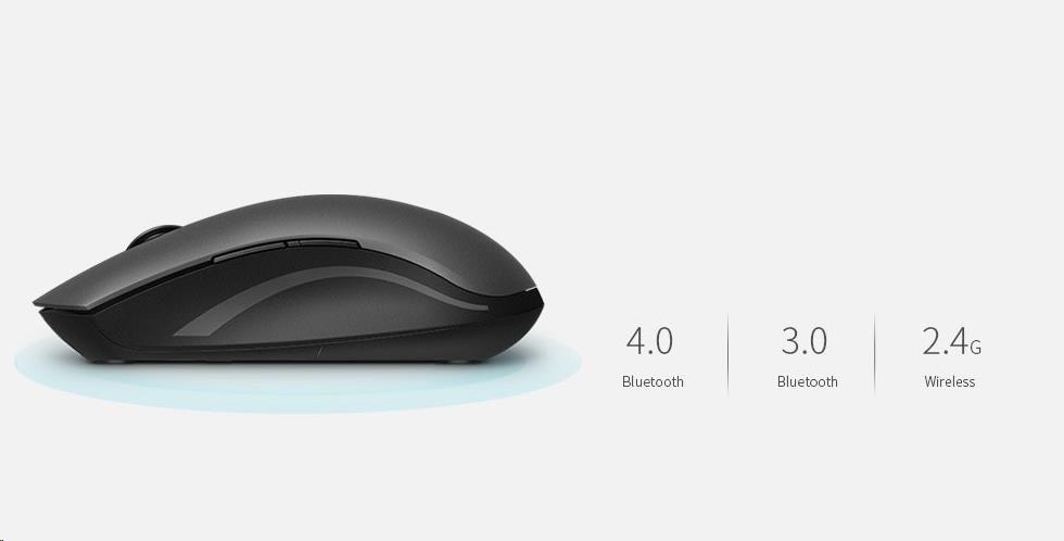 Inteligentní přepínání mezi Bluetooth 3.0, 4.0 a 2.4G zajišťuje stabilní připojení bezdrátového přenosu. I nadále můžete používat myš bez ohledu na nedostatek USB portu nebo při ztrátě přijímače.