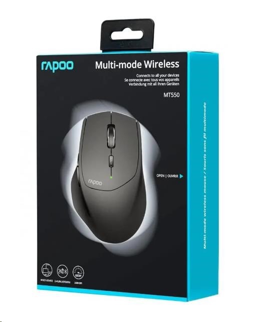 RAPOO myš MT550 Wireless Laser, Multi-mode: 2.4 GHz, Bluetooth 3.0 & 4.0, Black
