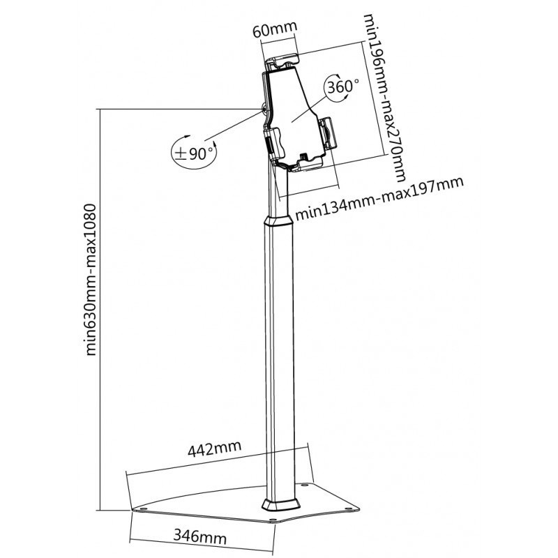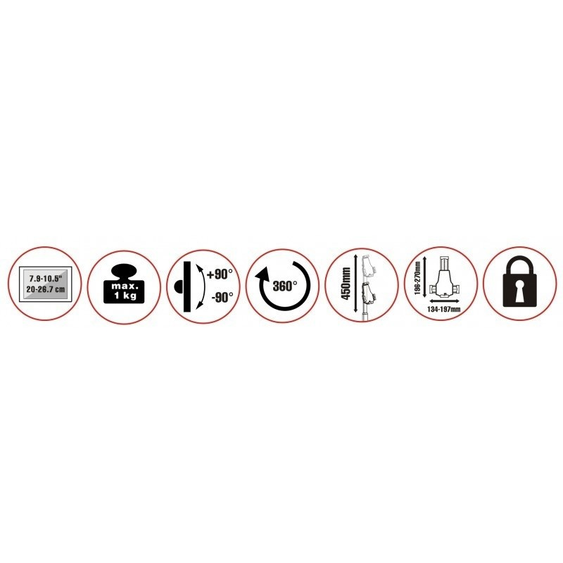 Uchycení pro tablety 7-11" v horizontální i vertikální poloze na stěnu se dvěma panty (vzdálenost 7,5 - 40,4 cm). Plynule nastavitelný sklon v rozmezí +80 až -35° a navíc otočný 360°, ideální pro rychlou změnu horizontální i vertikální polohy, fixace tabletu ze čtyřech stran, kovová konstrukce, černý..