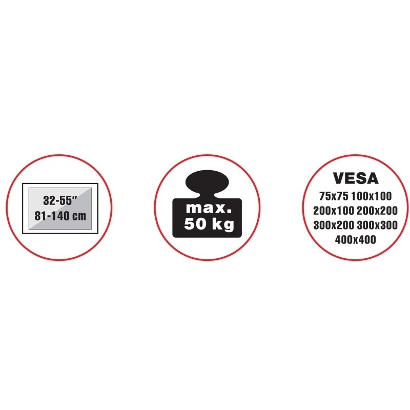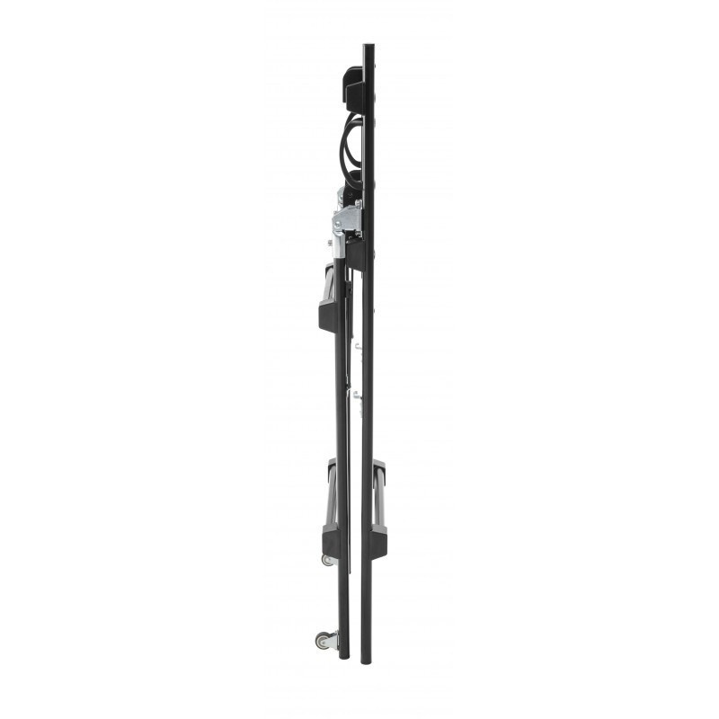 Přenosný stolek na velké TV s uhlopříčkou 32"- 55" (81-140cm) a hmotností maximálně 50kg. Výklopná konstrukce s aretací polohy na kolečkách, fixní držák pro vertikální i horizontální uchycení, po sklopení ideální na transport, rozměry 44x46,5x103cm, materiál ocel, barva černá. Uchycení VESA: 75x75, 100x100, 200x100, 200x200, 300x200, 300x300, 400x200, 400x400..