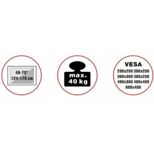 Unikátní televizní stolek na Plasma a LCD TV s uhlopříčkou 49"- 70" (124-178cm) a hmotností maximálně 40kg. Designová kombinace kové konstrukce + 4x dřevěné nohy (ořech). Propracované tvary a vedení kabeláže pro maximální estetický zážitek. Uchycení VESA: 200x200, 300x200, 300x300, 400x200, 400x400, 600x400..