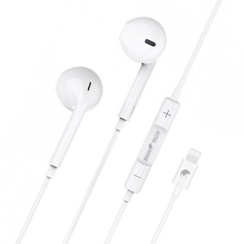 RhinoTech drátová sluchátka s Lightning konektorem bílá
