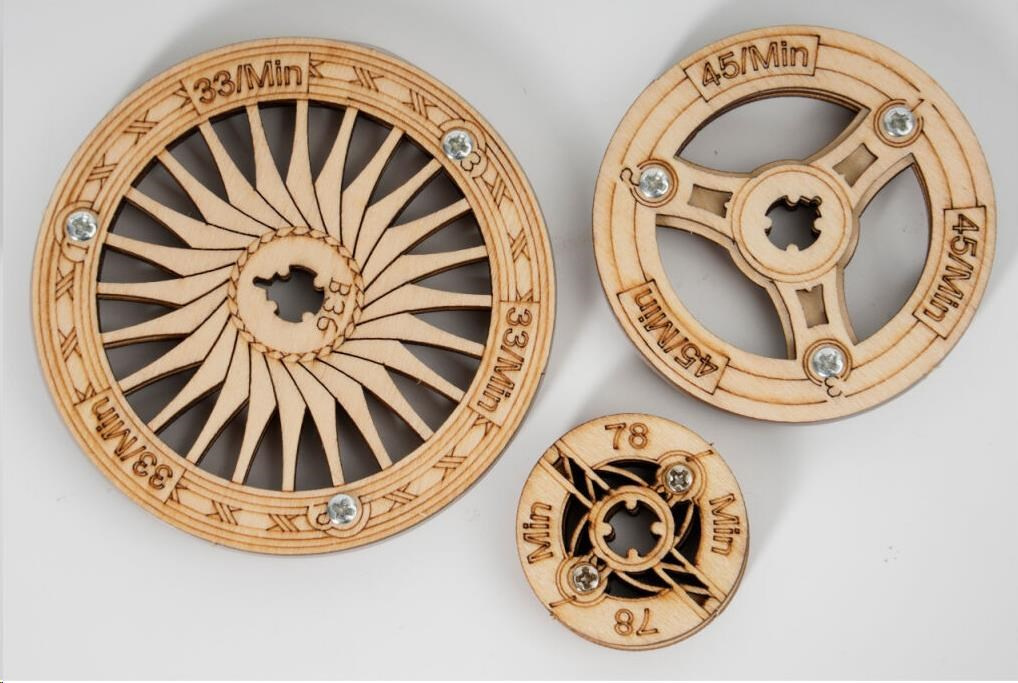 Jak zní historie? Stavebnice gramofonu z překližky. Retro designem, inspirovaným gramofonem vynalezeným Thomasem Edisonem, Vás přenese do 19. století. Není to jen model, skutečně umí přehrávat desky a je k němu i dodávána 7" gramodeska obsahující trojici písní (The Merry Gent, Memory Of A Dance, The Giant Killers). Zařízení disponuje ručně, klikou, poháněnou mechanikou a dynamem. Je možné jej ale pohánět i elektricky, pomocí vestavěného micro-USB konektoru. Podporuje desky o rozměrech 17,5 cm (7") a 25 cm (10") a všechny jim odpovídající rychlosti přehrávání. Hlasitost reprodukce lze upravovat pomocí otočného ovladače. Jedinečný dárek pro všechny milovníky kutilství a hudby, ale také luxusní interiérová dekorace do pokoje či kanceláře. Skládačka je dodávána v nesloženém stavu, balena v krabici. Vybaveno detailním návodem k sestavení.
