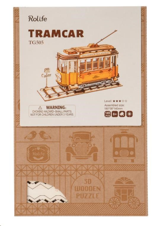 RoboTime dřevěné 3D puzzle Historická tramvaj