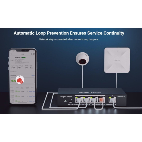 Registrace dealerské ceny: https://docs.google.com/forms/d/1sWwsswsbBk36eZx4CJrfl47qUvrORQyYz7kMjrt2f_c/prefill Popis produktu Inteligentní cloudově i přes webové rozhraní spravovatelný smart desktop switch RG-ES205GC od značky Ruijie, nabízí cenově efektivní řešení s 5 Gigabit LAN porty. Tento kompaktní přepínač je ideální pro síťové aplikace, které vyžadují výkon a spolehlivost. Co se výčtu funkcí týče, switch nabízí tichý chod bez ventilátorů, podporu až 16 VLAN, DHCP snooping, testování kabelu a ochranou proti zakruhování. Klíčové vlastnosti • 5× 10/100/1000 Mbps LAN porty • Kvalitní provedení, kovové šasi • Bez venilátoru • Nízká spotřeba - max. 3 W • Správa přes webové rozhraní a cloud • Celoživotní správa na Ruijie Cloud kdykoli a kdekoli • Rozpoznávání IP kamer - jedinečná hodnota pro CCTV síť • Automatická prevence proti zakruhování Obsah balení • Zařízení • Napájecí adaptér 5 V/1 A Technické parametry Konektory a rozhraní Rychlost LAN:(5) 10/100/1000Mbps Napájení Typ napájení:DC konektor Max. spotřeba energie [W]:3 Napájení přes konektor/svorkovnici:5V / 1A Fyzické charakteristiky Provedení:Desktop Ventilátory:Bez ventilátoru Šasi:Kovové Tlačítka:Reset Provozní teplota [°C]:0 až 40 Šířka [mm]:119 Výška [mm]:24 Hloubka [mm]:75 Obecné Rychlost přepínání [Gbps]:10 Tabulka MAC adres:2000 Rychlost předávání paketů [Mpps]:7,4 Software Web management:Ano Management:Webové rozhraní, Ruijie cloud Funkce:VLAN, DHCP snooping Výchozí IP adresa:10.44.77.200 Výchozí jméno a heslo:Nastavuje se při prvním spuštění.