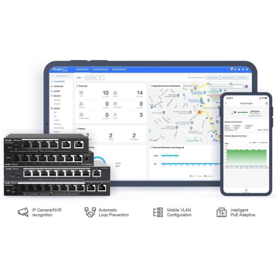 Registrace dealerské ceny: https://docs.google.com/forms/d/1sWwsswsbBk36eZx4CJrfl47qUvrORQyYz7kMjrt2f_c/prefill Popis produktu Inteligentní cloudově i přes webové rozhraní spravovatelný smart desktop PoE switch RG-ES209GC-P od značky Ruijie, nabízí cenově efektivní řešení s 9 Gigabit LAN porty z čehož 8 portů podporuje 802.3af/at PoE s celkovým PoE budgetem 120 W. Tento kompaktní přepínač je ideální pro síťové aplikace, které vyžadují výkon a spolehlivost. Co se výčtu funkcí týče, switch nabízí tichý chod bez ventilátorů, podporu až 16 VLAN, DHCP snooping, testování kabelu, ochranou proti zakruhování a v rámci PoE možnost použití až na vzdálenost 250 m při snížení linkové rychlosti na 10 Mbps. Klíčové vlastnosti • 9× 10/100/1000 Mbps LAN porty • 8× 802.3af/at PoE - max. 30 W/port, PoE budget 120 W • Kvalitní provedení, kovové šasi • Bez venilátoru • Nízká spotřeba - max. 10 W • Správa přes webové rozhraní a cloud • Celoživotní správa na Ruijie Cloud kdykoli a kdekoli • Rozpoznávání IP kamer - jedinečná hodnota pro CCTV síť • Automatická prevence proti zakruhování • Podpora Long Range PoE na vzdálenost 250 m Obsah balení • Zařízení • Napájecí adaptér 54 V/2.4 A Technické parametry Konektory a rozhraní Rychlost LAN:(9) 10/100/1000Mbps Napájení Typ napájení:DC konektor Typy PoE:PoE-Out (pouze) Podporované PoE-Out standardy:802.3af, 802.3at Počet PoE Out portů:8 PoE budget [W]:120 PoE na vzdálenost až 250m:Ano Max. spotřeba energie [W]:10 Napájení přes konektor/svorkovnici:54V / 2,4A Fyzické charakteristiky Provedení:Desktop Ventilátory:Bez ventilátoru Šasi:Kovové Tlačítka:Reset Provozní teplota [°C]:0 až 40 Šířka [mm]:202 Výška [mm]:28 Hloubka [mm]:108 Obecné Rychlost přepínání [Gbps]:18 Tabulka MAC adres:4000 Rychlost předávání paketů [Mpps]:13,4 Software Web management:Ano Management:Webové rozhraní, Ruijie cloud Funkce:VLAN, DHCP snooping Výchozí IP adresa:10.44.77.200 Výchozí jméno a heslo:Nastavuje se při prvním spuštění.