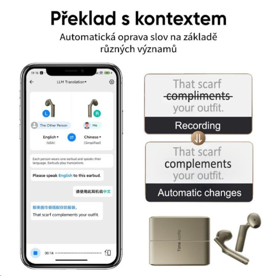- Režim překladu ~ 10 hodin (při použití dobíjecího pouzdra)