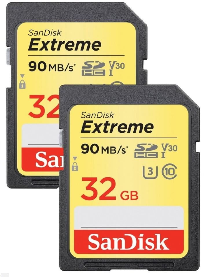 2x SanDisk SDHC Extreme 32GB 90MB/s Class 10 memory card