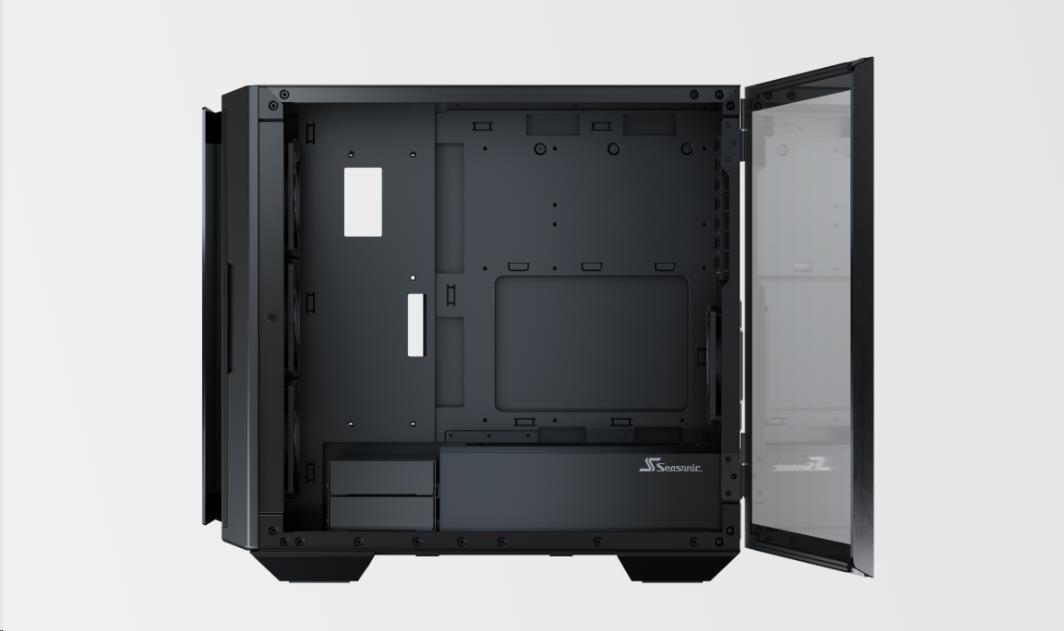 The state-of-the-art Seasonic SYNCRO Q7 Series is a mid-tower ATX chassis that features an aluminum body and a tempered glass panel on one side and the Seasonic SYNCRO CONNECT Module on the other. This setup can accommodate powerful hardware and provides versatile cooling and ventilation options. The SYNCRO CONNECT Module functions as a cable management hub, to which the components are directly connected with generally shorter cables. This setup simplifies cable routing and allows for a clean look on both sides of the case.