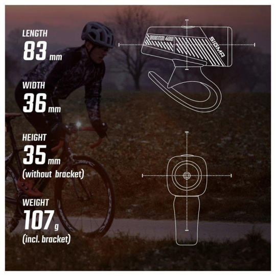Kvalitní a vysoce výkonná LED značky OSRAM a speciální konvexní čočka vyvinutá společností Sigma se postarají o velmi rovnoměrné rozptýlení světla a vynikající osvětlení. Logo SIGMA na podélných stranách světla má funkci pozičního světla Light Guide. Toto světlo se postará také o podstatně lepší viditelnost ze strany, a tím i o vyšší bezpečnost v silničním provozu.