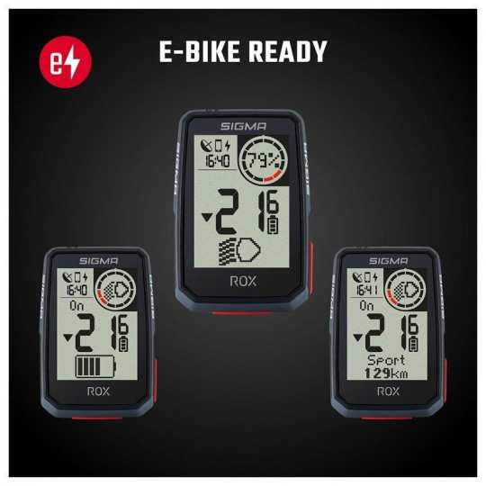 ROX 2.0 je připraven pro elektrokolo a lze ho snadno připojit k celé řadě z nich. GPS cyklopočítač se propojí s kompatibilním systémem elektrokola a zobrazí aktuální stupeň podpory, stav baterie, světlo a další data na displeji nebo v Red Circle.
