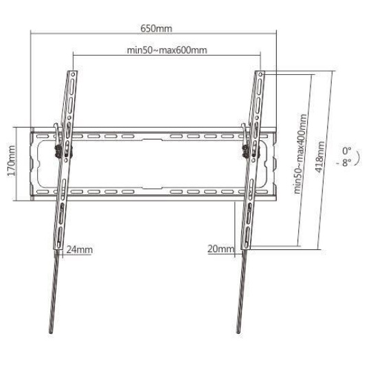 Poctivý držák na televize 37-80" s možností náklonu 0° až -8°, VESA 100x100 až 600x400, vzdálenost od zdi 20mm, automatické zajištění Tv, ocelová konstrukce, instalační materiál, nosnost 45kg.... více