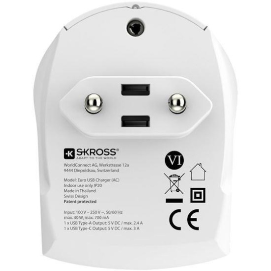 SKROSS USB A+C nabíjecí adaptér EU, 27W, typ C