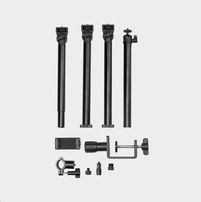 Balení obsahuje: 1x C-svorka 3x kloubové rameno 1x svorka ve tvaru kraba 1x držící rameno 1x svorka na telefon 1x držák lampy 1x adaptér 1/4"-20 na 3/8"-16 1x adaptér 1/4"-20 na 5/8"-11 1x uživatelská příručka
