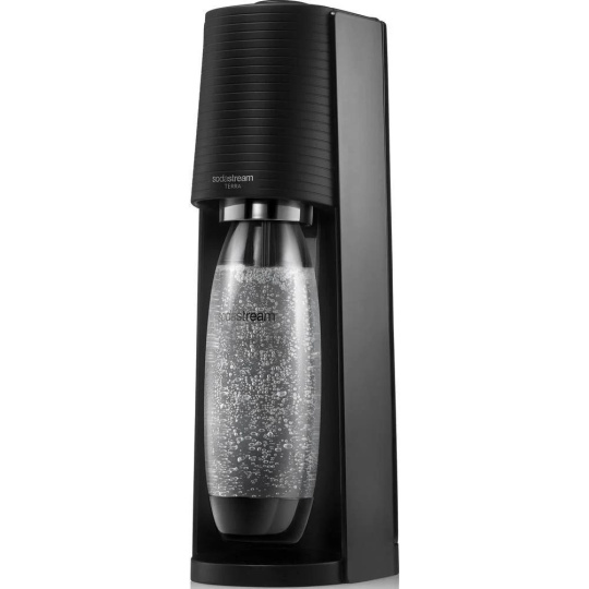 SodaStream Terra Black výrobník sody, mechanický, 1l láhev SodaStream Fuse, bombička s CO2, černý