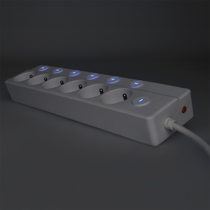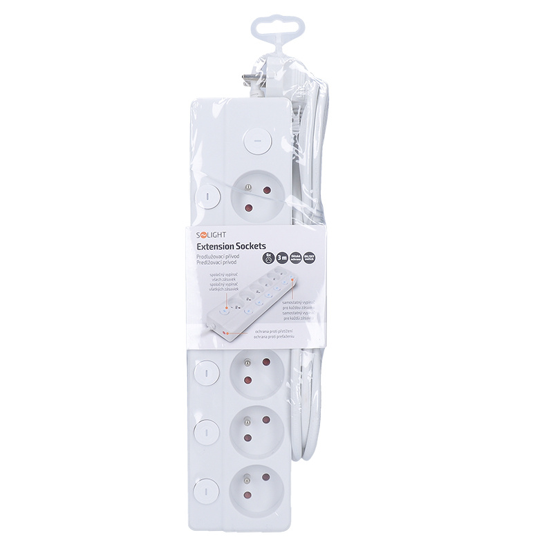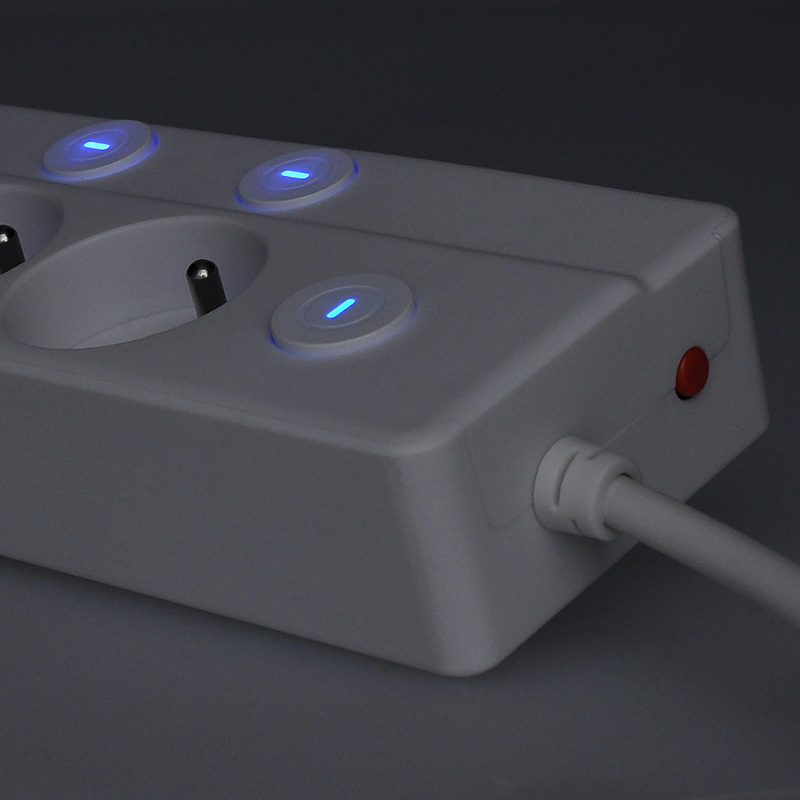 - Proodlužovací přívod se samostatnými vypínači pro každou zásuvku. Plus centrální vypínač ovládá všechny zásuvky najednou. Resetovatelný jistič při přetížení zásuvkového pole přeruší napájení. Poté je možné prodlužovací přívod opět zprovoznit.