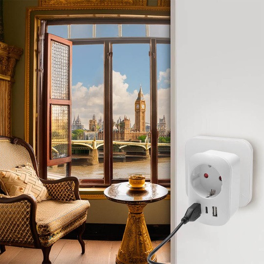 - cestovní adaptér s uzemněním a vestavěnou USB nabíječkou