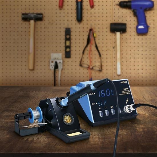 Páječka s LED displejem pro přesné pájení, která zobrazuje nastavenou a aktuální teplotu. Rychlé zahřátí do 8 sekund a výkon 70 W s rozsahem teploty 160 °C–480 °C. Automatický spánkový režim po 10 minutách nečinnosti, který sníží teplotu na 200 °C. Ergonomický design s flexibilním silikonovým kabelem a stojánkem pro bezpečné odkládání. Kalibrace teploty a čisticí houbička pro snadné čištění. Bezpečnostní funkce zahrnují ochranu před přehřátím. Napájení 220–240V, 50Hz, délka napájecího kabelu 1,35m.