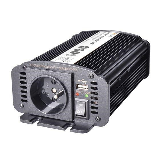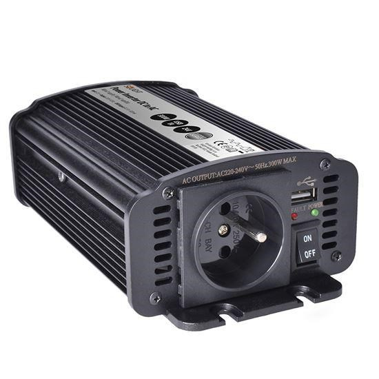 Solight invertor 12V, USB 500mA, kovový, černý, max. zatížení: 300W