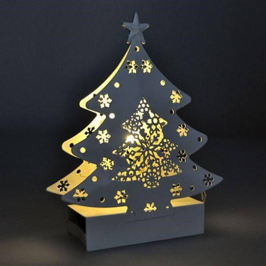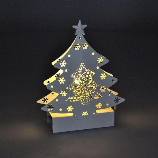 LED vánoční stromek, počet LED diod: 3, barva světla: teplá bílá (žlutá), napájení: 2x AA baterie (nejsou součástí), výdrž baterií: cca 72hod. (v závislosti na kvalitě baterií), třída ochrany: IP20 (vnitřní použití).
