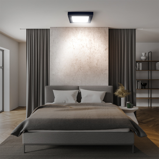 Solight LED mini panel CCT, přisazený, 12W, 900lm, 3000K, 4000K, 6000K, čtvercový, černá barva