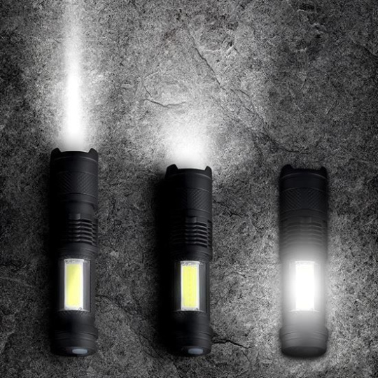 Solight LED nabíjecí kapesní svítilna se zoomem, 100lm + 70lm, Li-Ion, USB, černá
