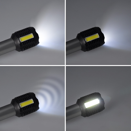 - ruční LED svítilna s hlavním a bočním zdrojem světla
