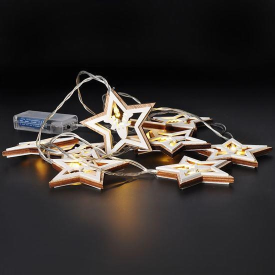 Solight LED vánoční řetěz hvězdy, 10x LED, dřevo, 1,5m, 2x AA
