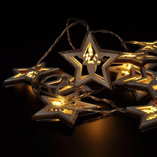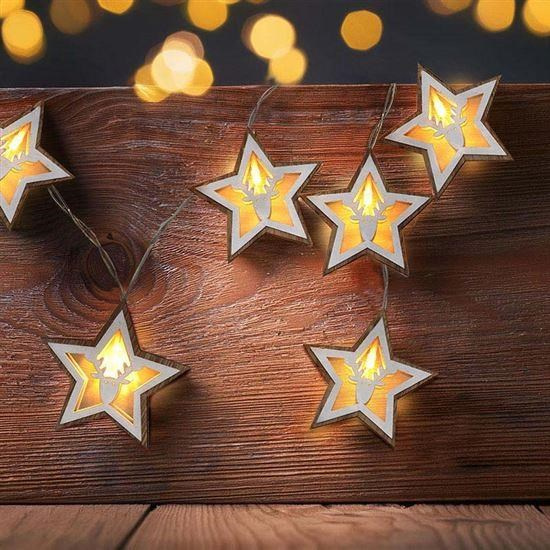 Vánoční dekorativní řetěz s dřevěnými hvězdami a LED diodami