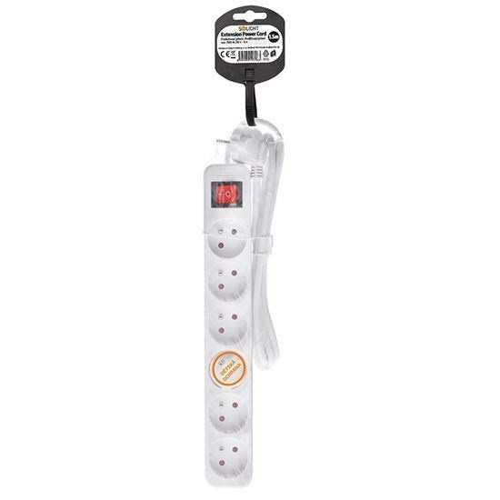Praktický bílý prodlužovací kabel s délkou 1,5 metru a šesti zásuvkami umožní přivést elektrickou energii tam, kde není k dispozici pevná zásuvka. Podsvětlený vypínač umožňuje pohodlné ovládání všech připojených zařízení. Ideální pro domácí i kancelářské využití.