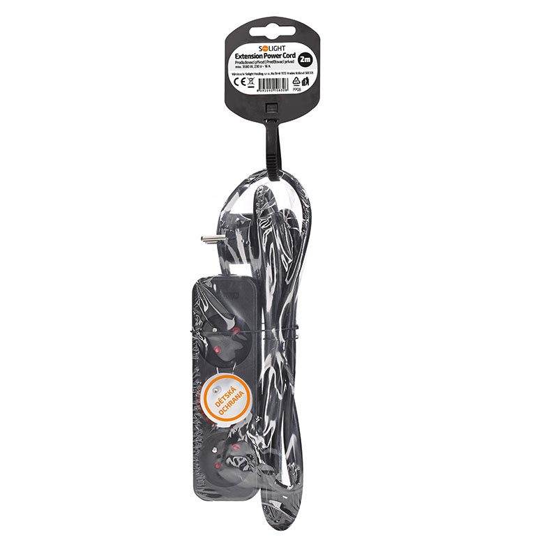 Solight prodlužovací přívod, 3 zásuvky, černý, 2m