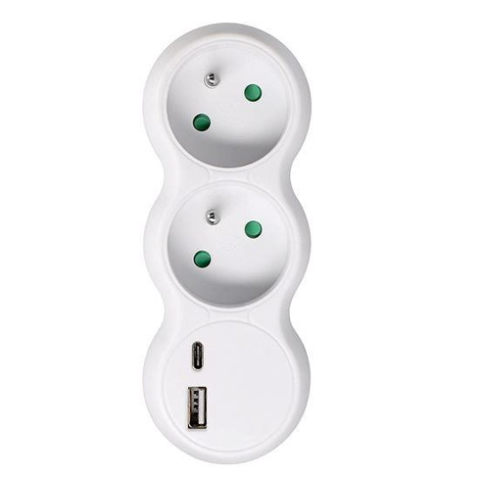 Výstup 2 x 10A/230V =>max. 16A, USB nabíjecí adaptér 2,4A max., USB výstupy 1x Typ-A + 1x Typ-C, dětská pojistka, barva: bílá.... více