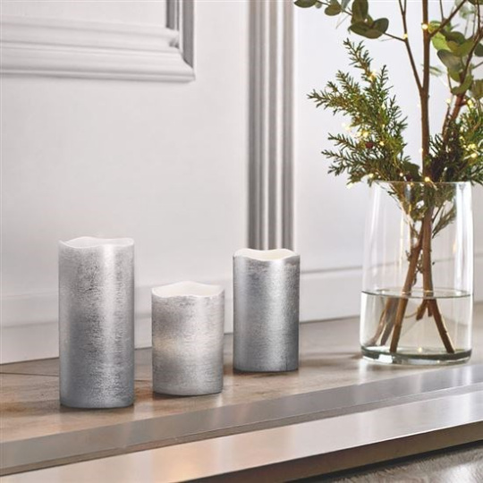 - sada LED svíček z vosku s přirozeně blikajícím plamenem ve stříbrné barvě