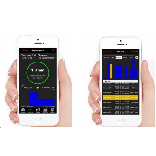 umožňuje pomocí mobilní aplikace okamžité sledování srážek. Aplikace Vás upozorní na překročení předem nastavené hodnoty maximálních srážek pomocí zprávy na vašem mobilním zařízení.