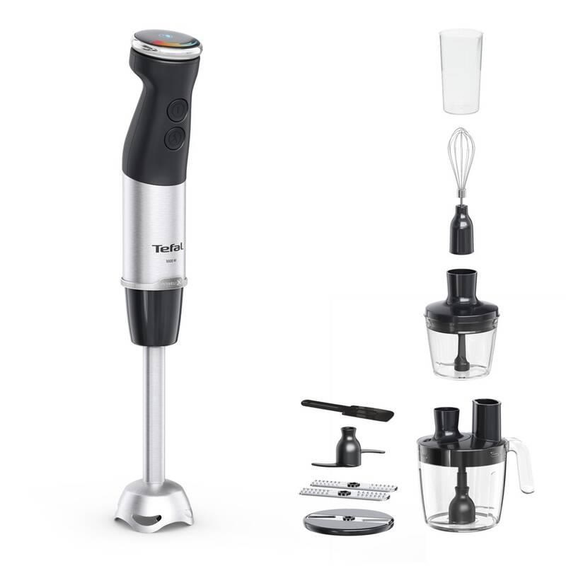 Tefal HB67G830 Quickchef+ 5v1 tyčový mixér, 1000 W, 20 rychlostí, tichý režim, plynulá regulace rychlosti, nerez / černá