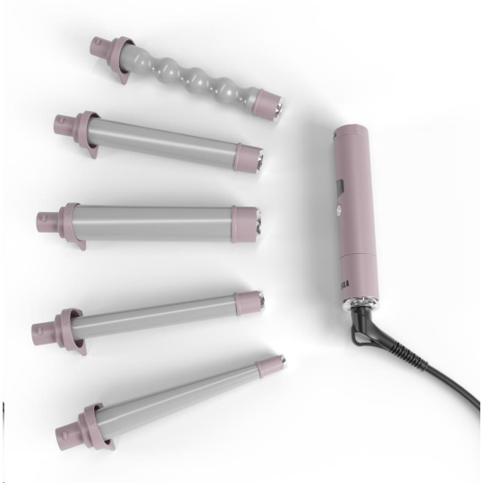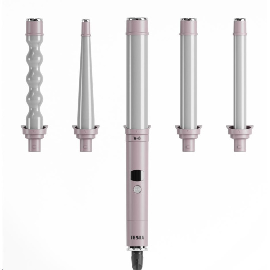 Kulma na vlasy Tesla nabízí pět vyměnitelných nástavců různých velikostí, díky kterým je univerzálním stylingovým nástrojem vhodným pro vytváření různých typů vln.