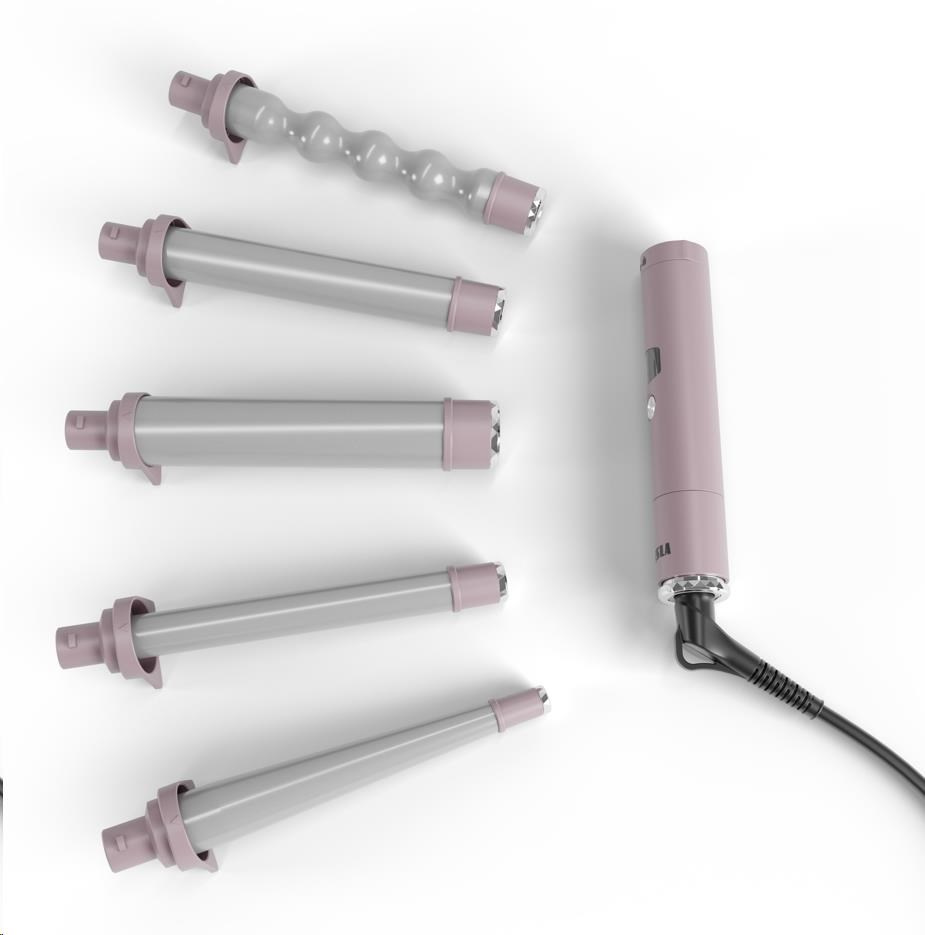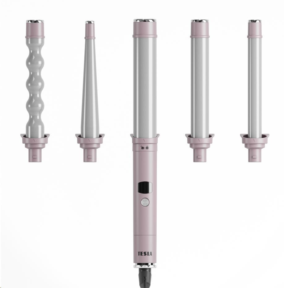 Kulma na vlasy Tesla nabízí pět vyměnitelných nástavců různých velikostí, díky kterým je univerzálním stylingovým nástrojem vhodným pro vytváření různých typů vln.