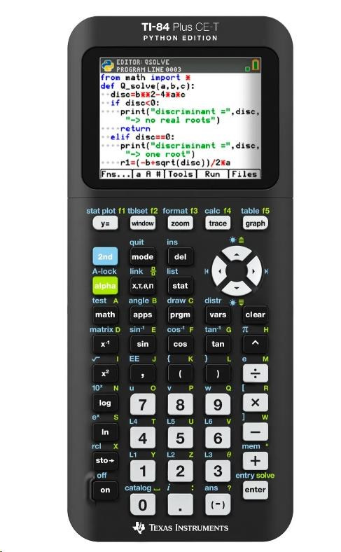 Grafický kalkulátor TI-84 Plus CE-T Python Edition je extrémně lehký a praktický. Tento nový model umožňuje programování v jazyce Python. S 3 MB flash ROM pamětí pro archivaci dat a ukládání aplikací