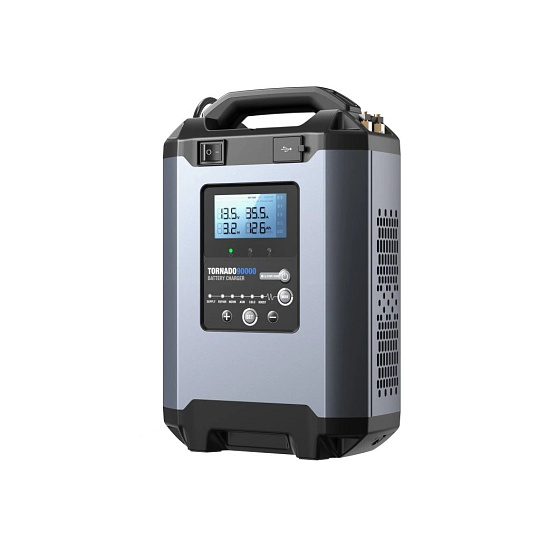 TOPDON Tornado 90000 je vybaveno přehledným displejem, který zobrazuje aktuální napětí, nabíjecí proud i průběh nabíjení. Robustní konstrukce, kvalitní svorky a aktivní chlazení ventilátorem zajišťují spolehlivý provoz i při dlouhodobém zatížení v profesionálním servisu.