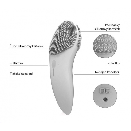 Každodenní čisticí plocha je vybavena jemnými silikonovými dotykovými body, které čistí obličej bez poškození pokožky.