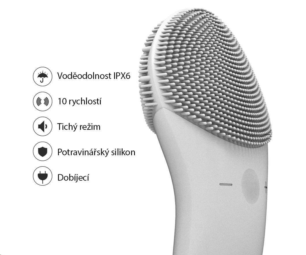 Každodenní čisticí plocha je vybavena jemnými silikonovými dotykovými body, které čistí obličej bez poškození pokožky.