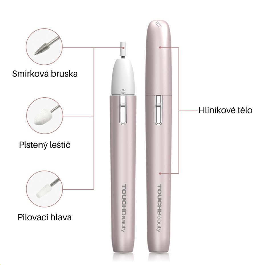 Díky sadě na manikúru a pedikúru TOUCHBeauty 2035 si můžete dopřát profesionální péči o nehty i bez návštěvy salónu. Je vhodná pro tvarování, opravy, broušení, leštění a vyhlazování nehtů. Nabízí 3 různé nástavce, kompaktní design ve velikosti tužky a skrytý úložný prostor. Je vhodná pro úpravu přírodních i umělých nehtů a odstraňování hrubé a odumřelé kůže.