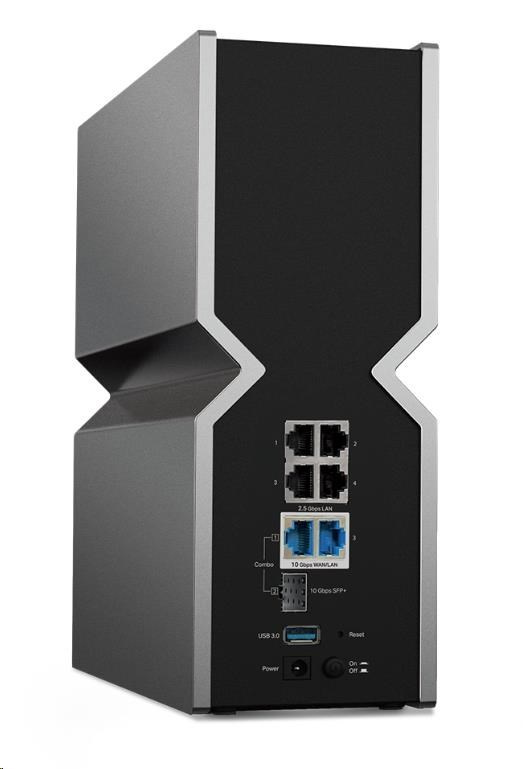 - Dva 10G porty: 1× 10 Gb/s kombinovaný ethernetový/optický port WAN/LAN + 1× 10 Gb/s WAN/LAN port + 4× 2.5 Gb/s porty + 1× USB 3.0 port zajišťují maximální flexibilitu a zvýšenou propustnost.§